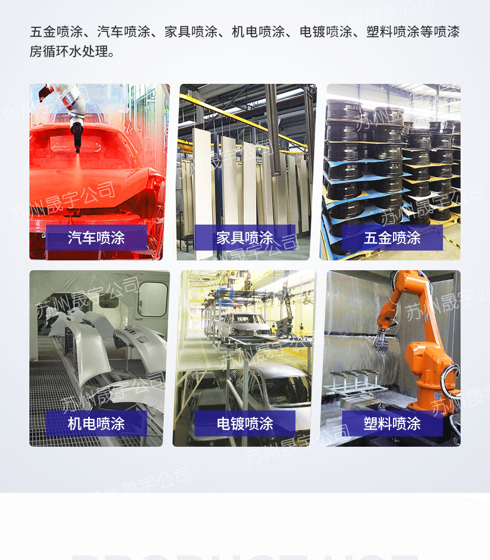漆雾凝聚剂原理:循环水中的漆渣与漆雾凝聚剂A剂接触后,形成细小颗粒;加入漆雾凝聚剂B剂后...